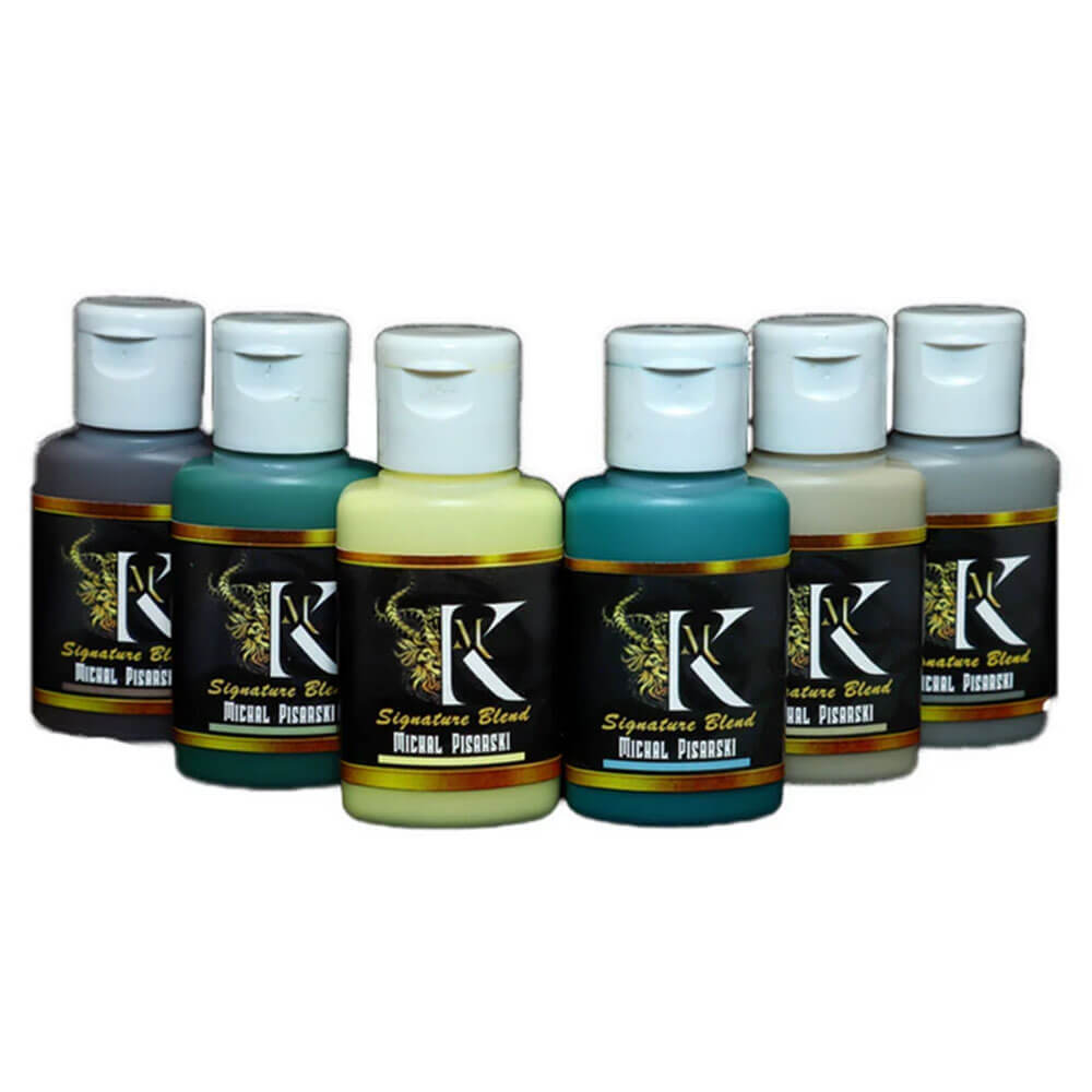 Essas tintas têm os pigmentos Kimera, em quantidades pesadas como sempre. Isso significa que você obtém o poder com o qual está acostumado com o conjunto puro e a cobertura incrível. Eles também se misturam perfeitamente com o conjunto de base e são uma expansão muito boa para isso. Além disso, há o trabalho do artista por trás do set. Porque estes não são apenas conjuntos com o nome de um artista no topo. Essas tintas foram concebidas livremente pelo artista e, de conceituá -las até a realização de que levamos mais de 1 ano de trabalho constante. Os artistas envolvidos trabalhavam lado a lado conosco para criar cada uma das 6 tintas com as características que eles queriam que tivessem para ter a tinta perfeita para a maneira como pintam.