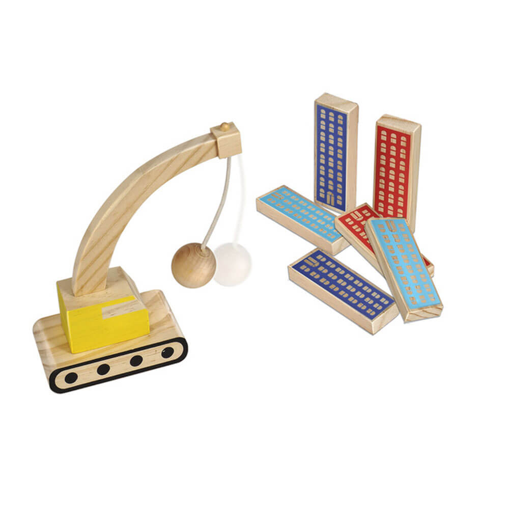 • Este conjunto inclui 6 edifícios de madeira e 1 bola de demolição.