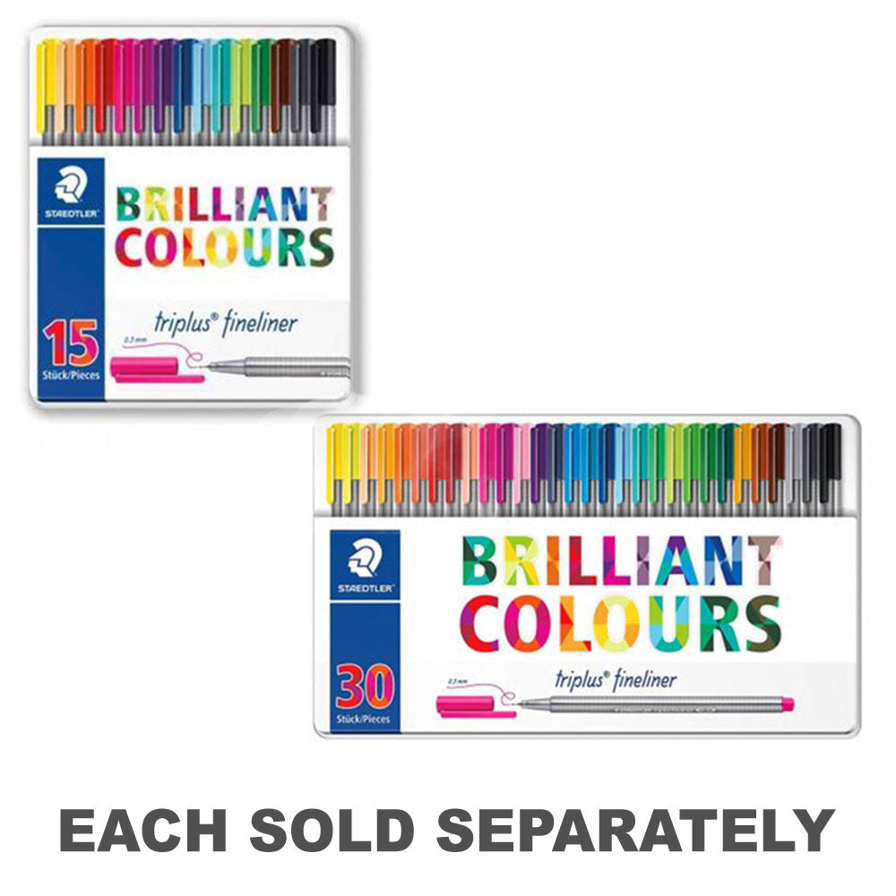 Triplus FineLiner "Brilliant Colors", ponta de metal reforçado com linha de 0,3 mm. Caixa de metal. Barril ergonômico triangular para escrita sem esforço. Seco seguro - pode permanecer sem limites por dias e não seca. Tinta à base de água, lavável na maioria dos tecidos.
