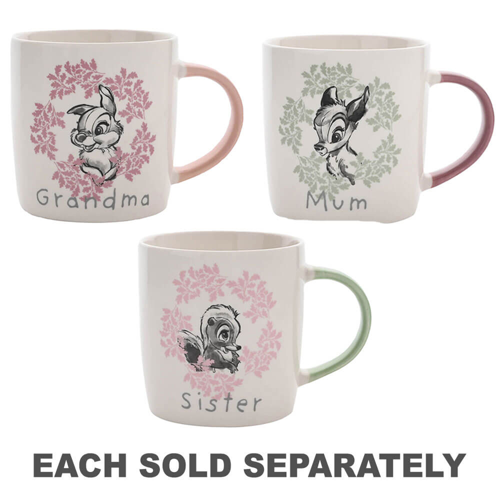 Denna söta och ömt designade mugg kan mormor som älskar Disney vet hur speciella de är. Den nya Bone China Mug har en vit finish och är prydd med en bedårande, tryckt bild av thumper från Bambi omgiven av rosa blad, som upprepas på båda sidor. Det är klart av "mormor" i silverbokstäver och stort, pastellrosa handtag.