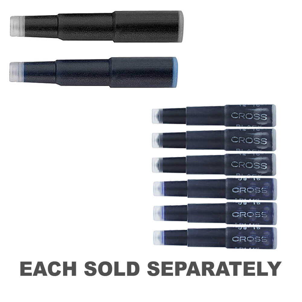 - Cross Fountain Pen Patronbläckfyllning, svart bläckpatroner, 6 per kort