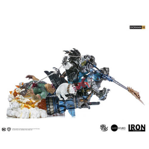 Sideshow och den världsberömda serietidkonstnären Ivan Reis visar ett av Iron Studios mest detaljerade projekt någonsin, inklusive en fantastisk stridsscen. Vi är stolta över att presentera den officiellt licensierade DC Comics Lobo Sixth Scale Diorama. Lobo 1/6 skala diorama -staty