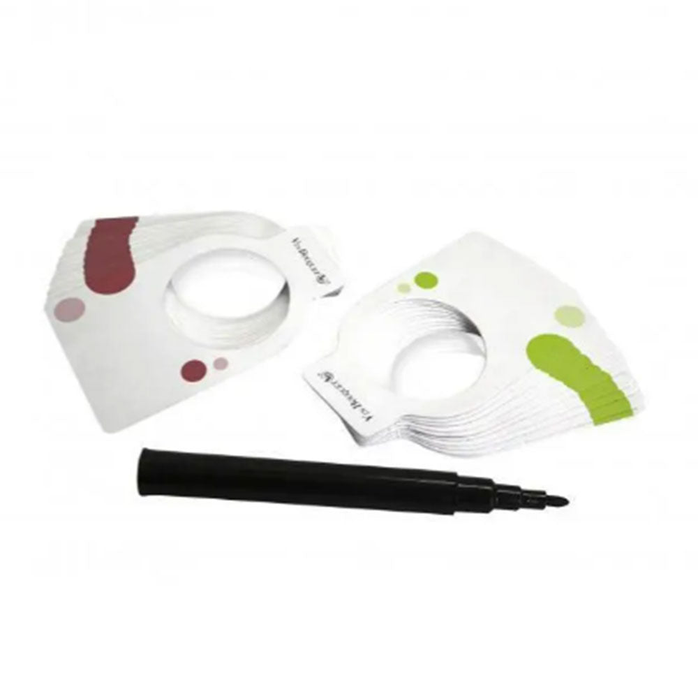 Uppsättning av 24 etiketter för att markera dina flaskor och en svart markör för att anpassa dem. Anpassa och häng på flaskans hals. De är perfekta för att ge en gåva eller för att differentiera flaskor vid evenemang.
